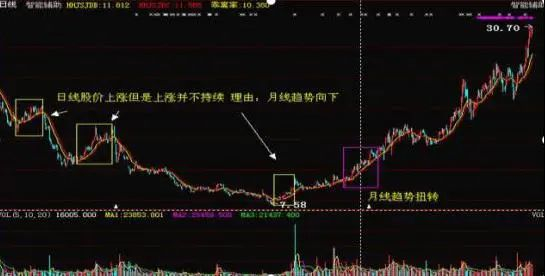 总之月线趋势用来确定大方向,如果留心翻看一下2013年中翻倍的股票,300和002中有相当一部分的股票形态如此 。