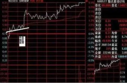 (2)盘中先快速拉高股价,然后慢慢往下打压实施威逼式洗盘