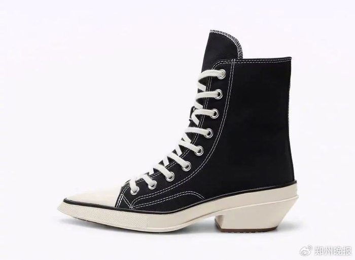 尖头+高跟+帆布,售价799元!近日,匡威推出新款尖头帆布鞋设计引热议,主播上一秒疯狂夸:好帅、秀场!高定!下一秒:比较小众,我个人也不是很理解。匡威此前打破传统,还出过长筒靴、细高跟鞋。在其设计说明中提到,“从办公室到派对现场,这双高跟鞋注定成为焦点”,这种猎奇设计的匡威鞋吸引不少消费者“尝鲜”。