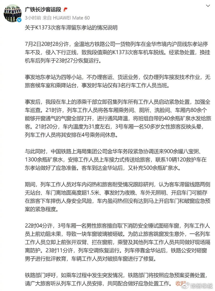 列车脱线停运近3小时、乘客砸窗,官方通报