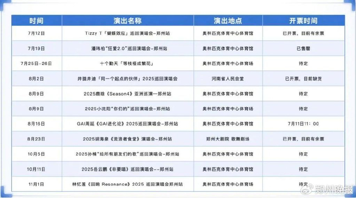 岳云鹏、鹿晗、孙楠......郑州演唱会又上新!2025下半年最新排期表来了。