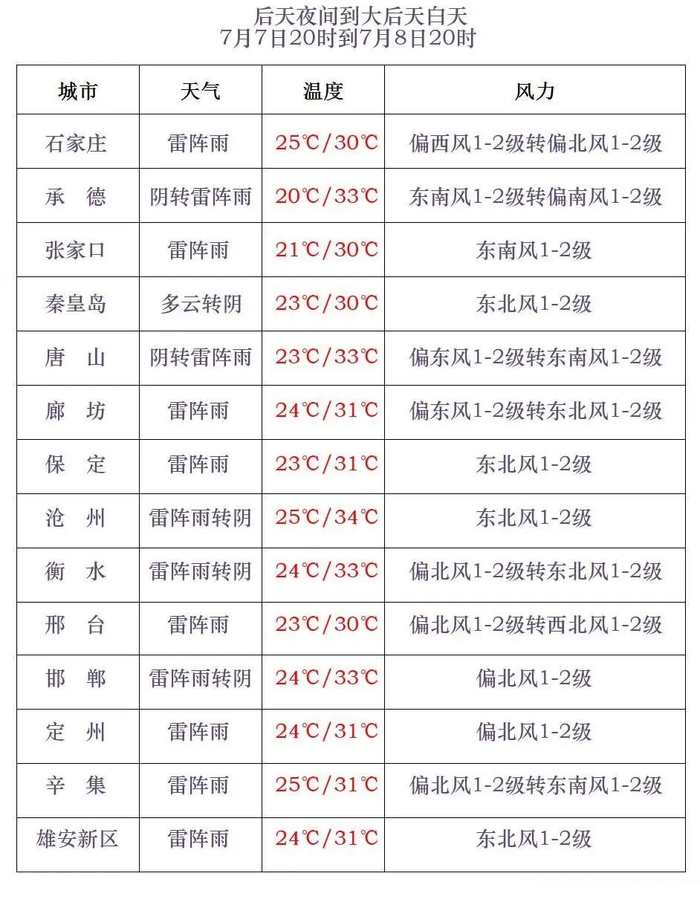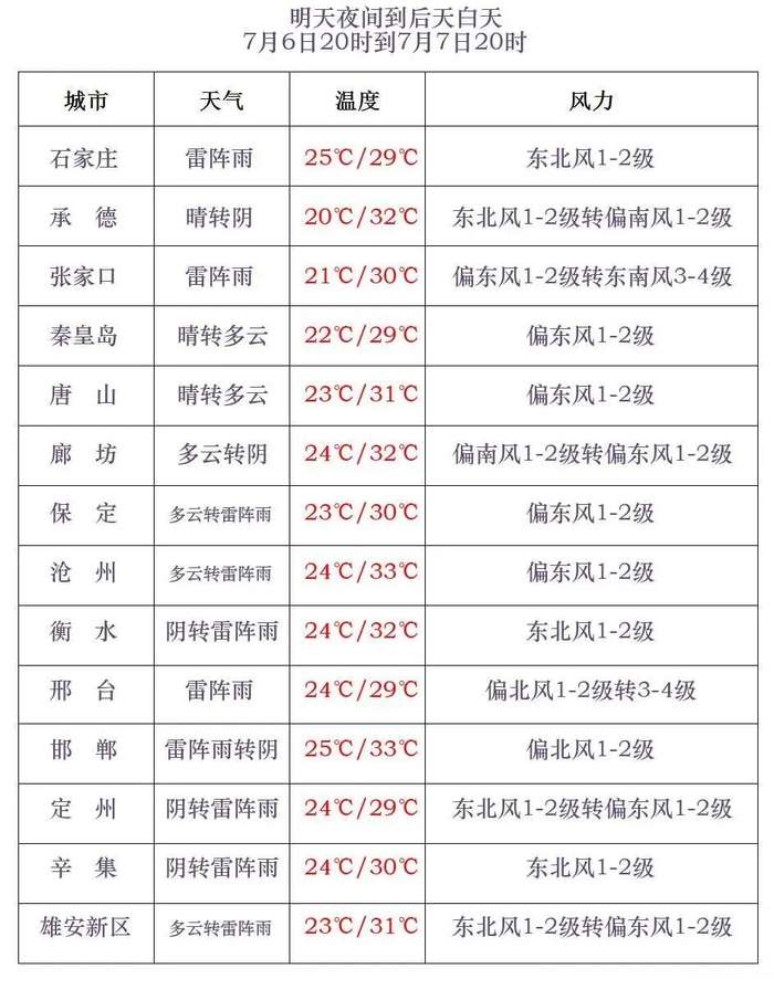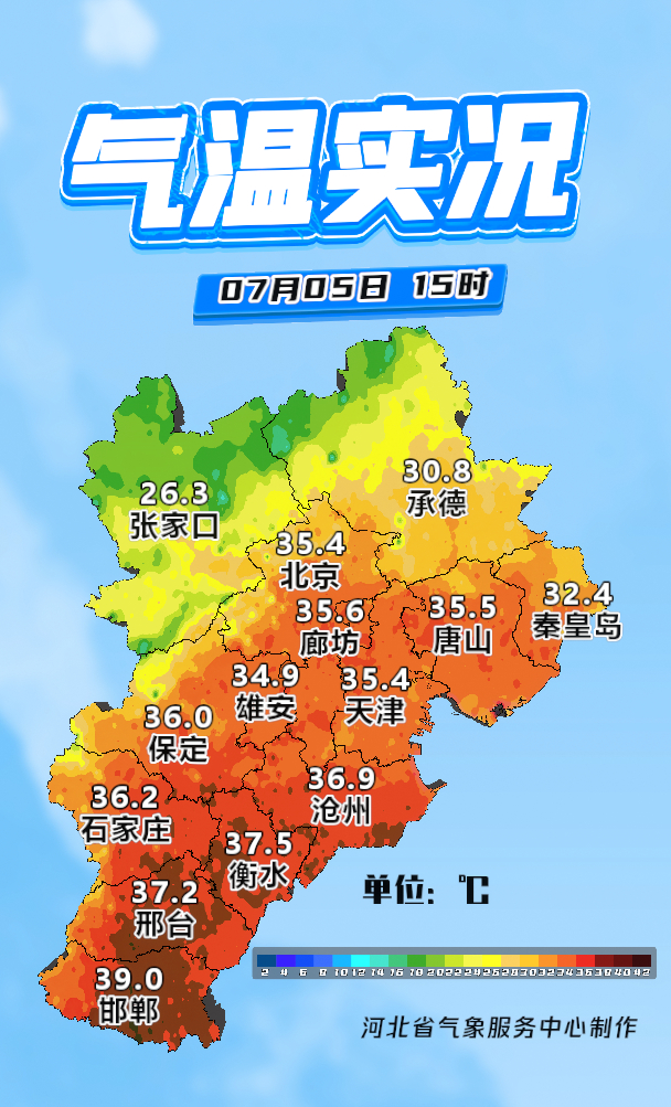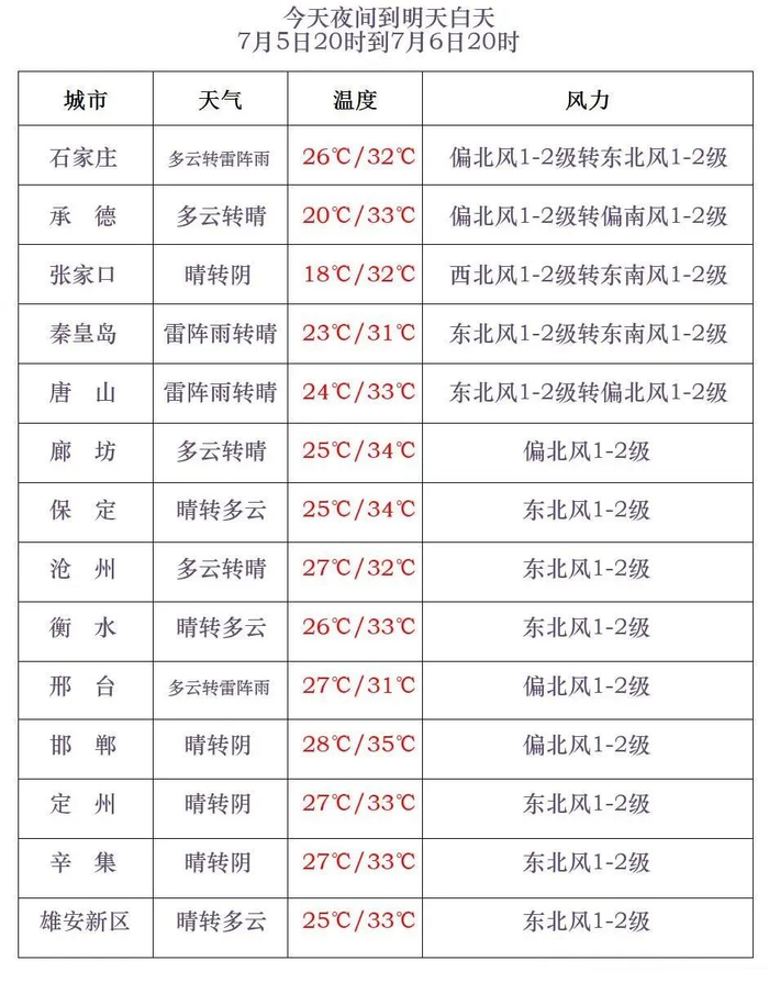 河北省气象台2025年7月5日17时发布天气预报: