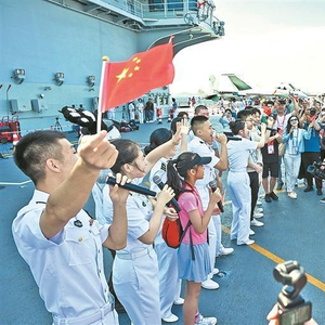 7月5日,编队官兵为来访民众举行快闪活动。 在香港回归祖国28周年之际,海军山东舰航母编队到访香港。山东舰是中国首艘国产航母,这次访问香港首次面向公众开放参观。 新华社记者 朱炜 摄