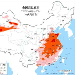预计7月6日白天,华北南部、黄淮、江淮、江汉、江南大部、重庆、华南大部以及新疆南疆盆地和准噶尔盆地等地有35℃以上的高温天气,其中,新疆南疆盆地、河北南部、山东、河南、安徽、江苏、上海、湖北、湖南东部和北部、江西中北部、浙江中北部、广西北部等地部分地区最高气温37~39℃,新疆南疆盆地和吐鲁番盆地、山东半岛北部、苏皖北部等地局地可达40℃以上。