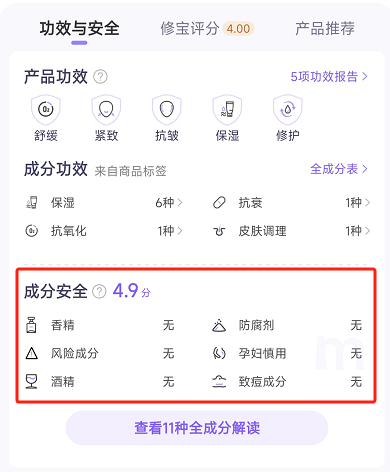 美修评分4.9!不含香精、防腐剂和致痘、风险成分。