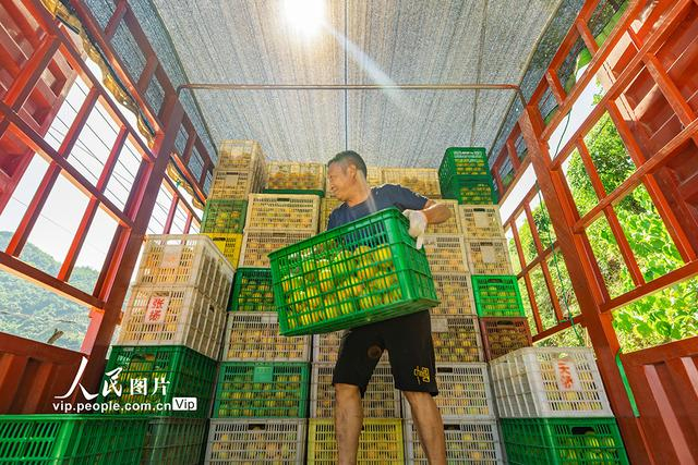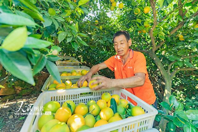 眼下,正值三峡库区湖北省宜昌市秭归县泄滩乡夏橙的采收旺季。当地果农们顶着炎炎烈日,穿梭于果园之中,抓紧采摘、分拣、装运,供应市场。彭强摄(人民图片网)