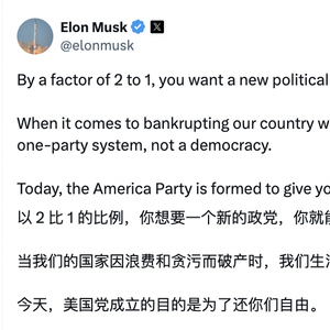 说干就干!马斯克宣布“美国党”成立,要“避免美国破产”