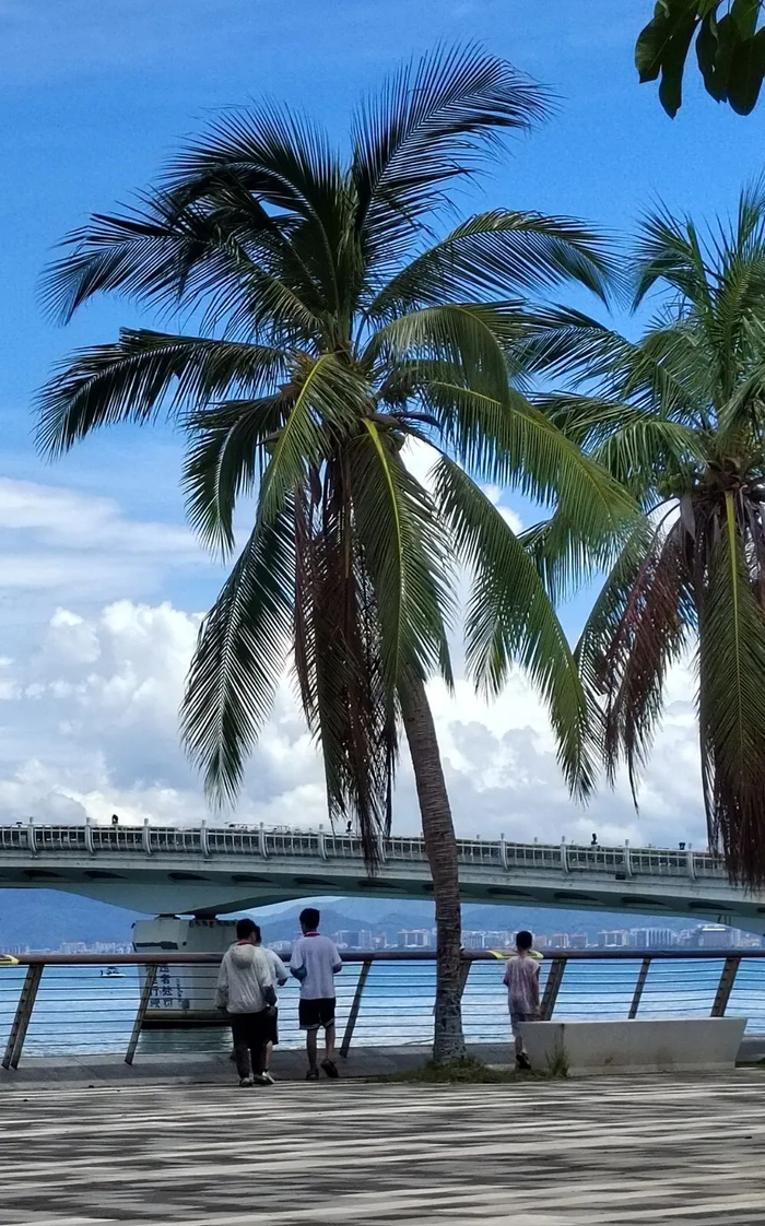 站在公路旁,可以无遮挡的隔海远眺三亚的建筑群,看这座城市的日新月异。这里同样也是赶海的好去处,潮水慢慢退去,大海慷慨地敞开了它的宝藏库,脱掉鞋子,卷起裤脚,踩进微凉柔软的泥沙里,指甲盖大小的贝壳、花纹独特的小海螺、机灵的小沙蟹惊慌失措地逃窜……每一次小小的发现都像中了奖。