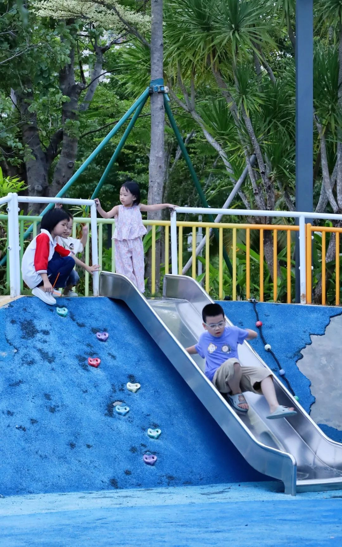 目光所及,是生动活泼的画卷。三五好友或兴趣相投的人们围坐一团谈笑风生,绿荫摇曳的健康步道上,有人步履轻快,挥洒汗水;有人悠然慢跑,享受每一次呼吸与步伐的契合。公园里的儿童乐园是小朋友的快乐天地。
