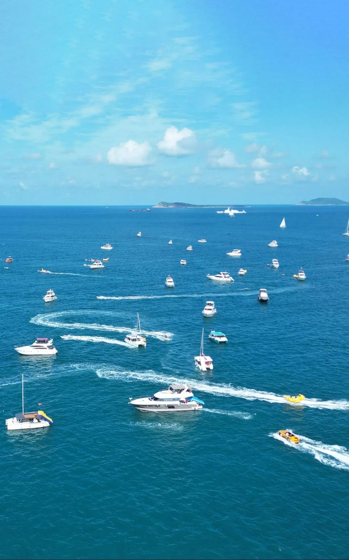 作为名副其实的“千艇之城”,海上堵船早已成为三亚的“凡尔赛”度假方式。上午,海面上游艇排队出海,下班路上,又能看见众多正在归港的游艇帆船。三亚湾每天都在上演“海上嘉年华”。