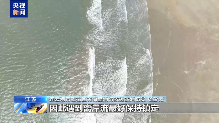 连云港市赣榆区黄海路消防救援站消防员 杨彭豪:离岸流并不会把人卷入海底,只会把人带离海岸。因此,遇到离岸流最好保持镇定,避免慌乱。也别往岸上游,那样会消耗大量体力。应该保持冷静,调整好呼吸,放松身体,保持姿势,口鼻向上露出水面,让自己随波逐流。