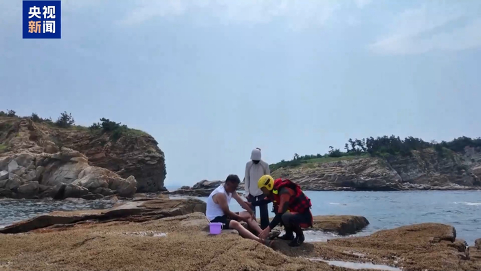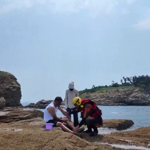 6月9日,在山东威海,一名来自东北的游客在赶海游玩时,被礁石划伤了小腿,所幸当地消防及时赶到现场进行解救。