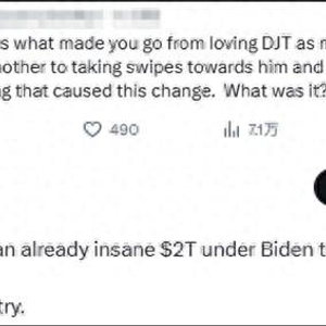 马斯克回应说:“(特朗普)将在美国前总统拜登时期已经疯狂的2万亿美元财政赤字扩大到2.5万亿美元,这将使国家破产。”