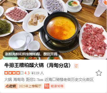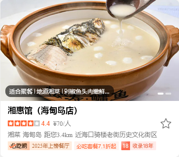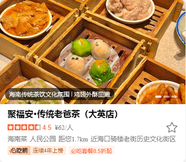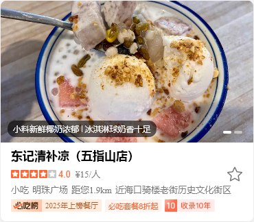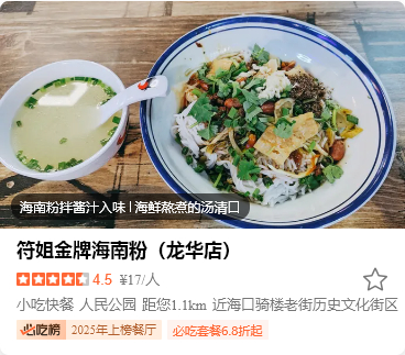 在最新揭晓的2025大众点评“必吃榜”上,海南省上榜商户数达32家,其中海口有17家上榜,三亚有15家上榜。全省上榜餐厅中,有20家为扎根街头巷尾的烟火小店,占比近65%;10年以上老店数量近10家,占比近30%。首次上榜商户数占比超六成。更多城市特色餐厅上榜,占比超43%,其中五成为首次上榜。梁庄琼味酒楼、东记清补凉、符姐金牌海南粉等地道餐厅新上榜,“烟火气”“本地特色”“鲜烹现制”成为榜单关键词。
