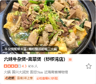 六味牛杂煲·斋菜煲(桫椤湾店)