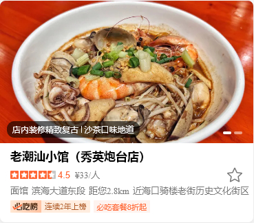 推荐菜:海鲜沙茶面、猪虾沙茶捞面、绿豆爽
