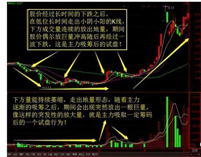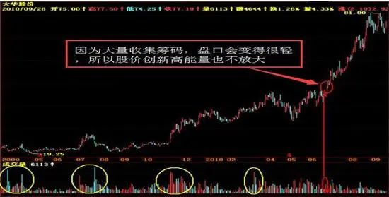 1、因为在底部收集大量筹码,盘口会变得很国统区,所以即使创新高能量也不会放大