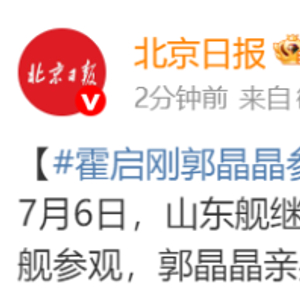 山东舰航母编队一连5日访问香港,7月6日,山东舰继续开放给香港市民参观。港协暨奥委会会长霍震霆、立法会议员霍启刚夫妇来到山东舰参观,郭晶晶亲身体验枪械操作。