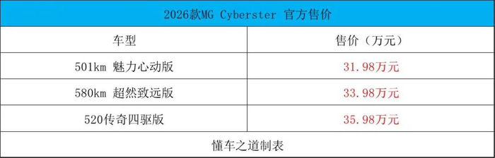 新车上市四:2026款MG Cyberster