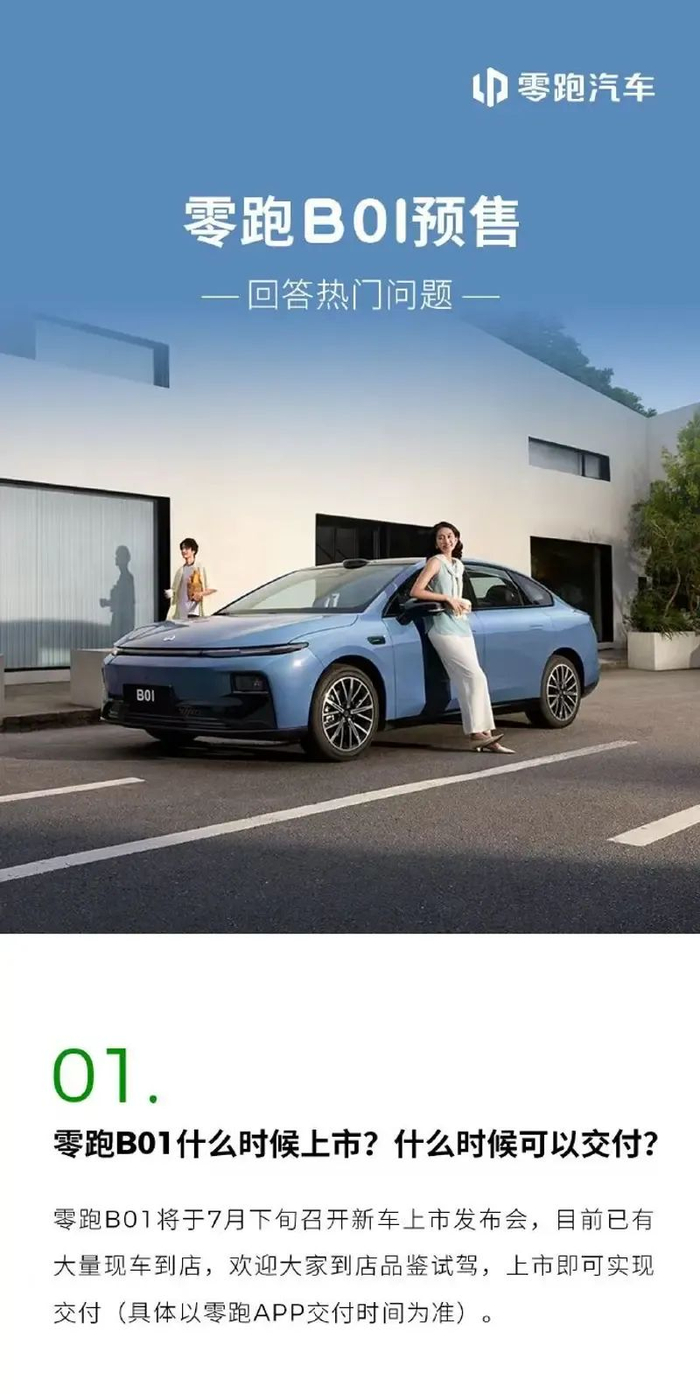 日前,零跑汽车官方宣布,零跑B01目前已经有大量现车到店,将于7月下旬召开新车上市发布会。