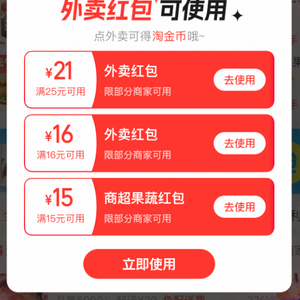 当晚,外卖平台放出了大量且大额的外卖红包券。其中包括“满25减21”“满25减20”“满16减16”等多张无门槛的外卖券。