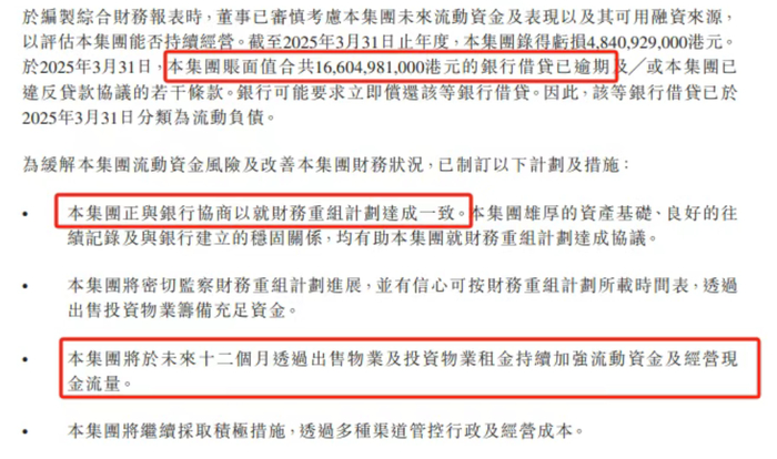 火上浇油的,是核数师德勤·关黄陈方会计师行的一则声明。声明显示,截至2025年3月底,英皇国际账面共计166亿港元的银行借贷已逾期,或已违反贷款协议的若干条款,其经营能力受到广泛质疑。
