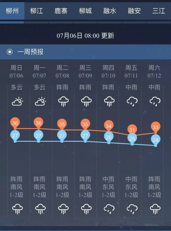 未来一周柳州市区天气