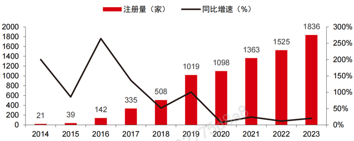 2014-2023年中国精酿啤酒行业当年新成立企业数量