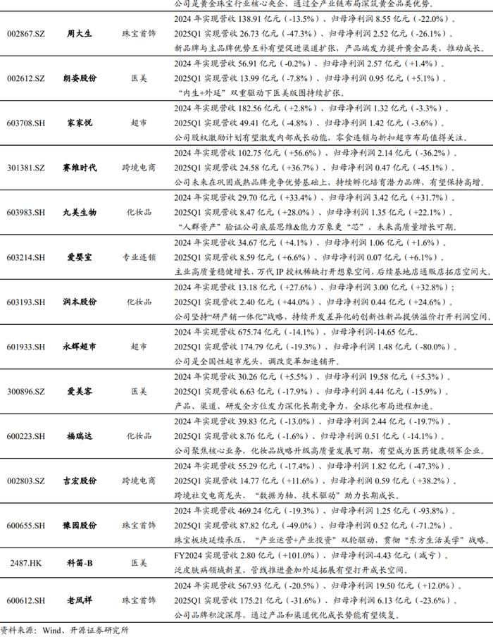 详见开源零售2022年3月7日首次覆盖报告《潮宏基(002345.SZ):东方时尚珠宝龙头品牌,发力加盟扩张驱动高成长》和2025年4月30日信息更新报告《潮宏基(002345.SZ):2025Q1业绩高增超预期,差异化产品提升品牌势能》等。