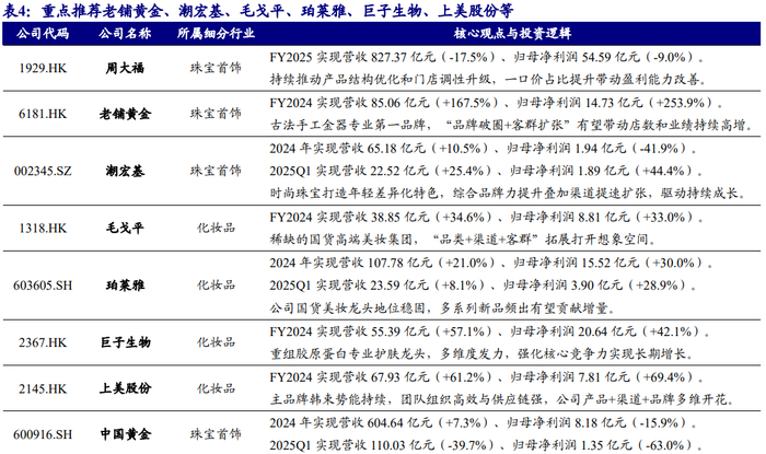 投资主线一(黄金珠宝):关注具备差异化产品力和消费者深度洞察力的黄金珠宝品牌,重点推荐老铺黄金、潮宏基、周大生等;