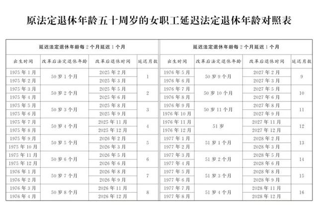 从2025年1月1日起,原法定退休年龄为五十周岁的女职工,法定退休年龄每二个月延迟一个月,逐步延迟至五十五周岁。