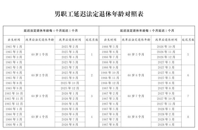 从2025年1月1日起,男职工法定退休年龄每四个月延迟一个月,逐步延迟至六十三周岁。