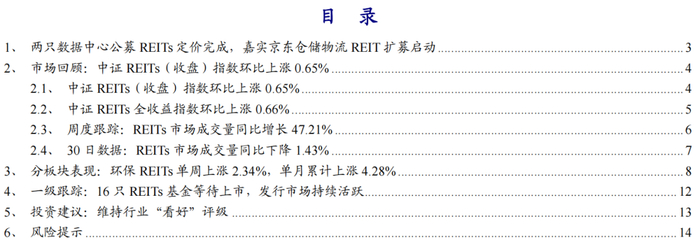 核心观点:嘉实京东仓储物流REIT扩募启动,环保REITs单周表现优异