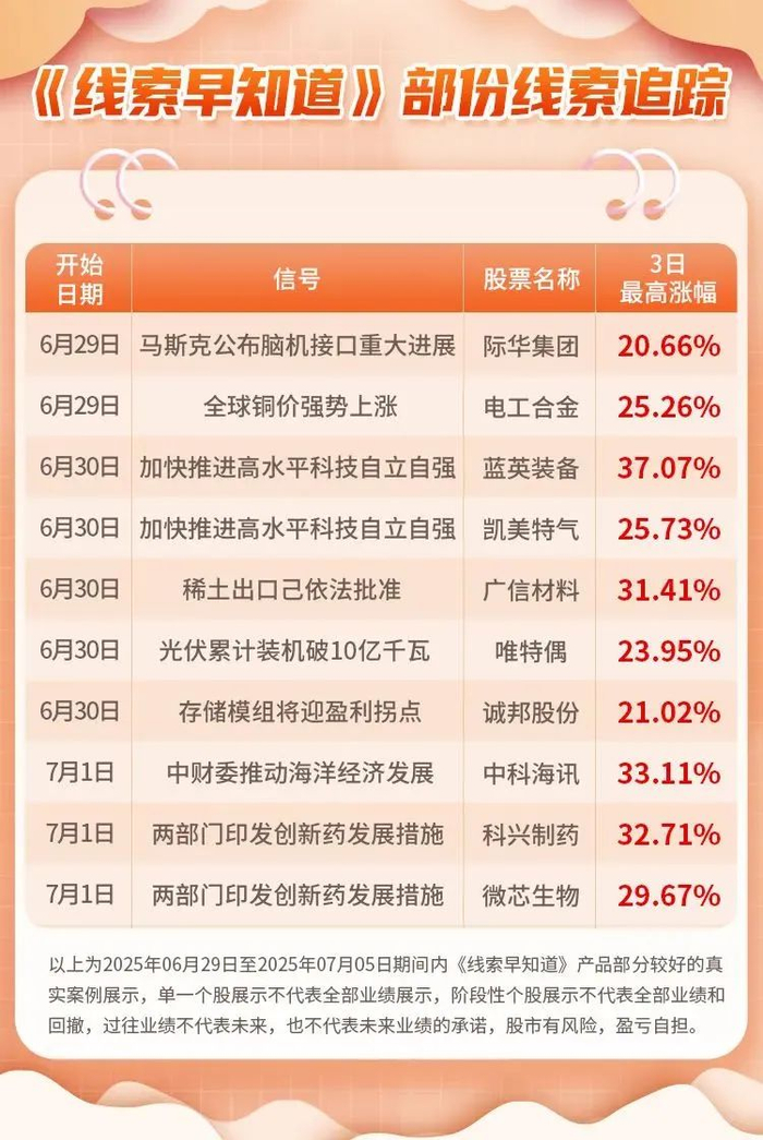 (以上内容及观点为越声理财《线索早知道》提供,仅供参考,不构成投资建议,投资者据此操作,风险自担)