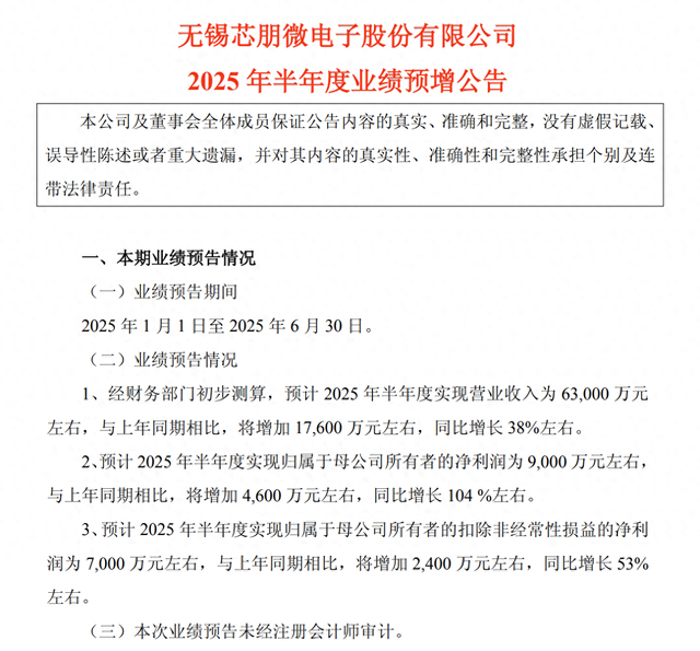 《科创板日报》7月6日讯(记者 郭辉)芯朋微今日发布2025年上半年度业绩预告。
