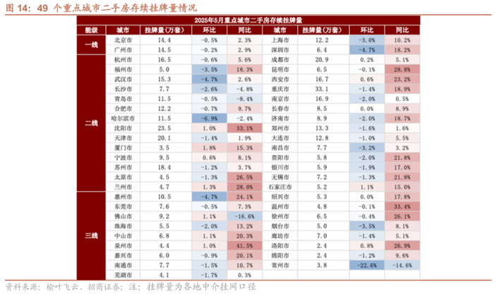 今年1-4月二手房存续挂牌套数持续环比净增,虽然5月挂牌量小幅环比下降,但挂牌量仍处于较高水平。截至25年5月,49城二手房存续挂牌量较24年末高出11%。