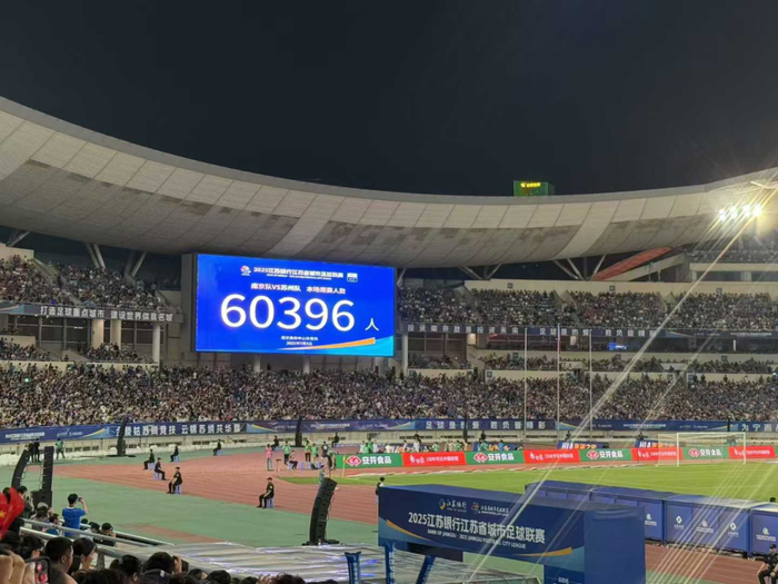 7月5日晚,2025年江苏省城市足球联赛(简称:“苏超”)第六轮上演焦点对决。尽管当日最高气温达39℃,球迷热情依然高涨。经过90分钟鏖战,南京队主场与苏州队0比0打成平手。本场共吸引60396名观众到场观赛,创下中国足球业余赛事单场上座率新纪录。