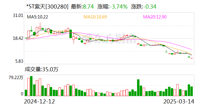 *ST紫天还面临重大违法强制退市风险。公司6月27日收到福建证监局下发的《行政处罚事先告知书》,经查,*ST紫天2022年、2023年年度报告存在虚假记载,同时,2022年、2023年虚假记载的营业收入金额合计达24.99亿元,且占该两年披露的年度营业收入合计金额的63.53%;公司可能触及重大违法强制退市情形。