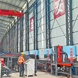 在智能蒸养区,新浇筑的箱梁乘坐轨道台车进入“桑拿房”——生物质智能蒸养窑。生物质智能蒸养窑以秸秆、木屑等农林废弃物为燃料,循环热流设计将热能利用率提升30%以上,能耗较传统蒸汽锅炉降低约40%,用电成本减少50%,碳排放锐减70%,年消耗农林废弃物9000余吨,年碳减排超13000吨——相当于种下1063棵树。PLC控制系统将温湿度误差牢牢控制在±2℃以上,仅需14至16小时即可达到传统工艺7至14天的养护效果。一键启动、自动恒温、无人值守、数据上云,全流程智能化养护效率与质量追溯实现了质的飞跃。