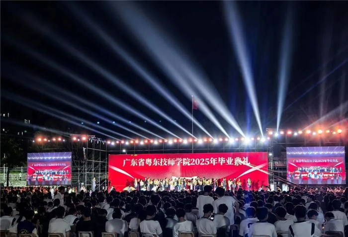 ● 7月5日晚,广东省粤东技师学院2025届毕业生毕业典礼在北山湾校区举行,2790名毕业生带着“匠心筑梦山海情·毕业骊歌启新荣——遇见最美的自己”的青春宣言,告别校园,奔赴人生新征程。