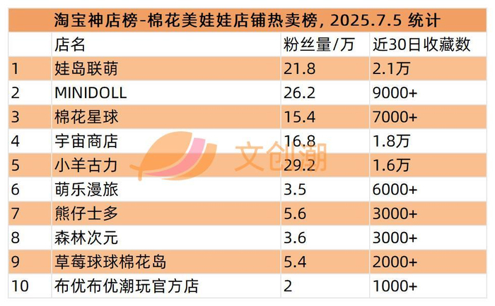 棉花美娃娃店铺热卖榜,前五分别是: