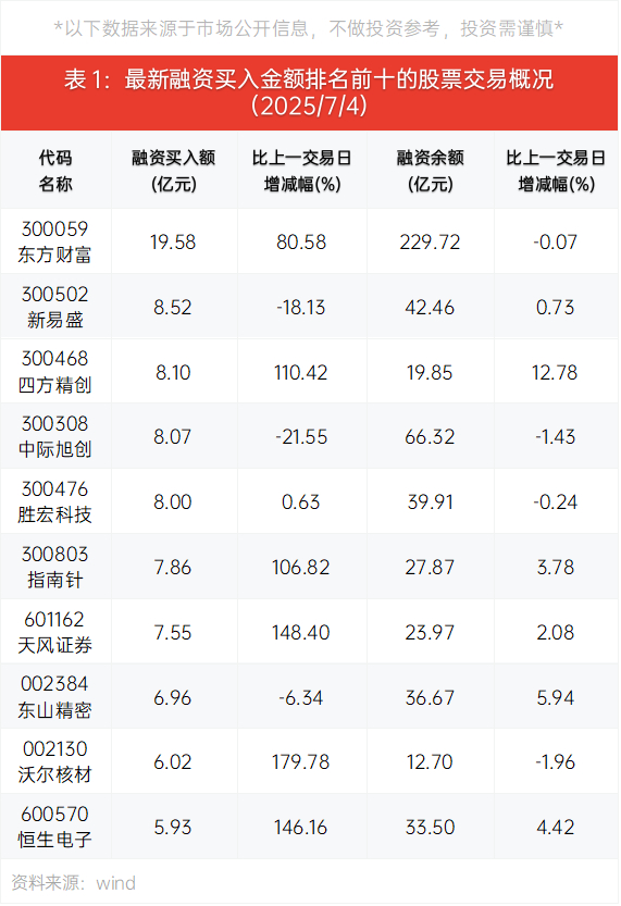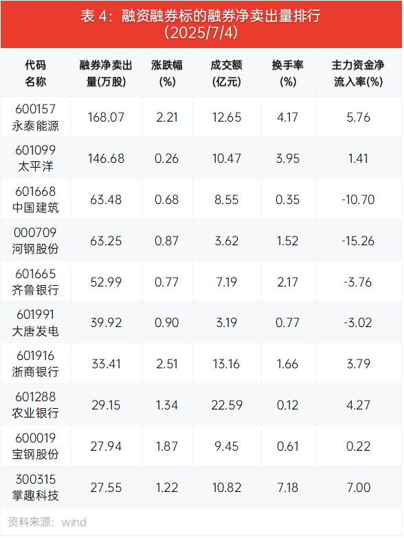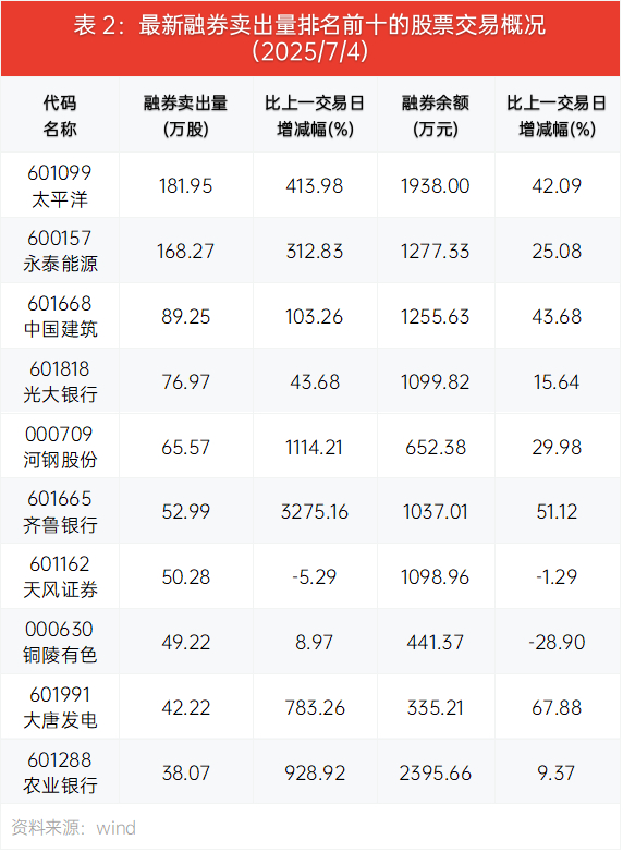截至7月4日,沪深京三市融资融券余额合计18529.27亿元,较前一交易日减少62.04亿元;融资余额合计18400.47亿元,较前一交易日减少63.4亿元;融券余额合计128.8亿元,较前一交易日增加1.37亿元。