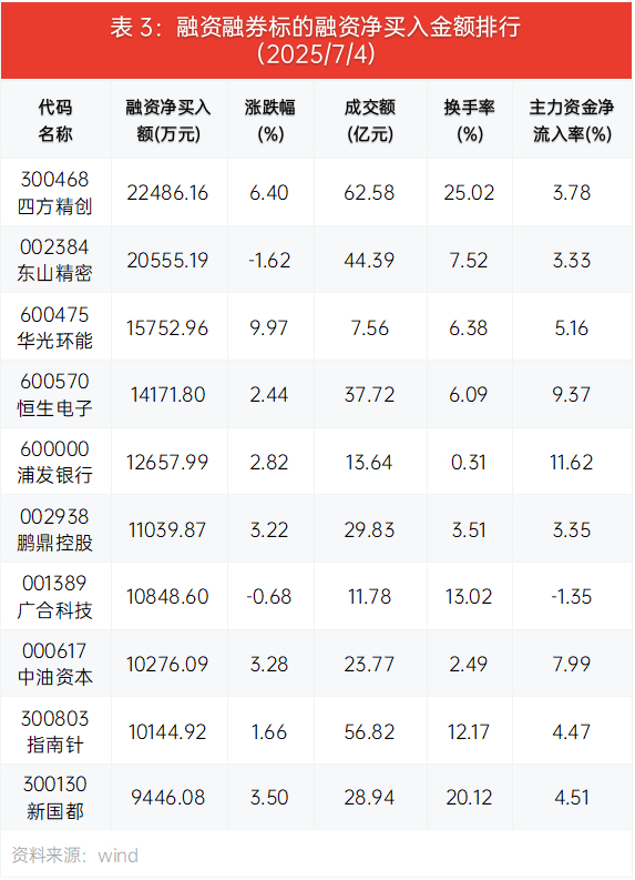 7月4日,融资资金流向显示,电子元件、软件开发、风电设备等板块净流入居前,净流入规模在1亿元以上的行业有3个;银行、半导体、通信设备等板块净流出居前。