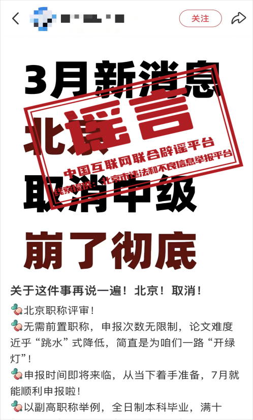 辟谣:“北京取消中级职称”系谣言