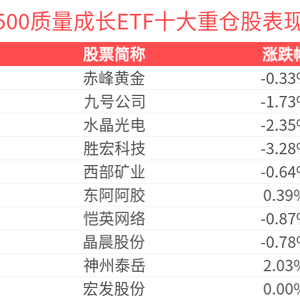 数据显示,截至2025年6月30日,中证500质量成长指数(930939)前十大权重股分别为东吴证券(601555)、恺英网络(002517)、华工科技(000988)、恒玄科技(688608)、惠泰医疗(688617)、春风动力(603129)、水晶光电(002273)、天山铝业(002532)、长江证券(000783)、顺络电子(002138),前十大权重股合计占比20.42%。
