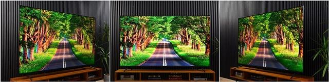 可视角度上,我们实测了正面、左右侧面比较极限的可视角度,画面基本能够保持亮度和色彩不失真,非常适合家里人围坐在一起观看节目,无论坐在哪个角落,画面都不会偏色,也没有泛白的现象。