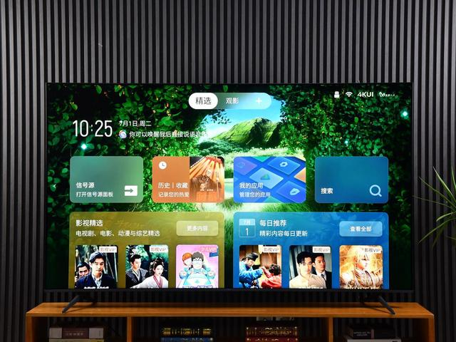 因此灵控系统3.0的第一项升级就是从UI到壁纸,全部换成4K的,这一下清晰度就上去了,打开电视看着更清晰的桌面,感觉心情都舒畅了。