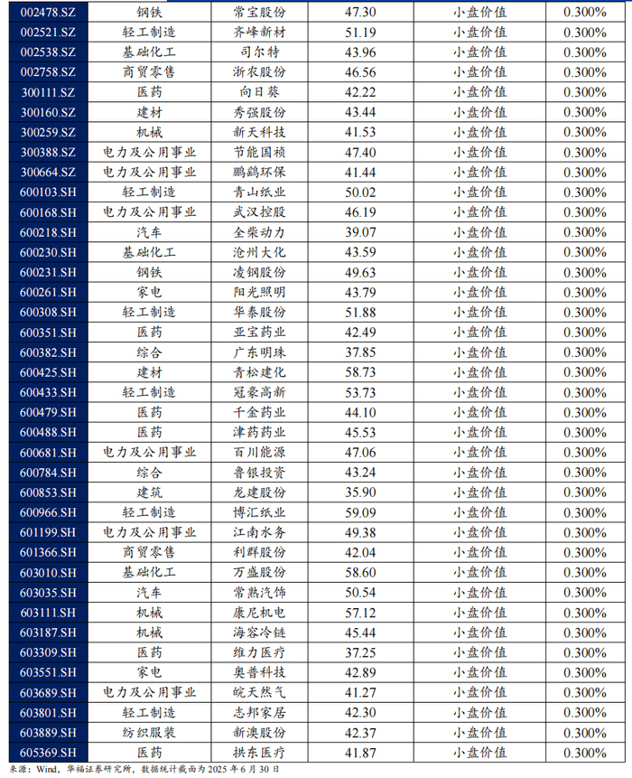 本文跟踪的极致风格高BETA选股策略根据子策略过去12个月的风险特征,并以子策略过去80日动量秩排序调整其在极致风格高BETA选股策略占比,截至2025年6月30日数据显示,策略在2025年7月对子策略的权重配置如下图,在大盘价值策略权重占比最高,约67.72%,在小盘价值策略上的权重占比最小,约15.00%。