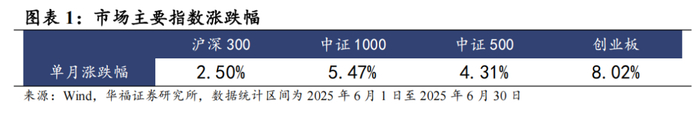 6月整体A股市场上涨。6月沪深300指数收益率为2.50%,中证1000收益率5.47%,中证500收益率4.31%,创业板收益率8.02%。