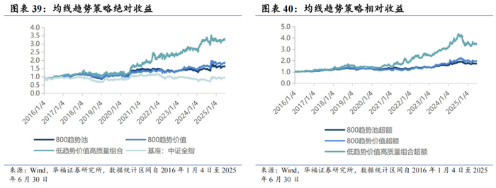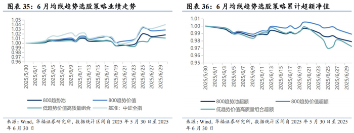 本报告对该策略的统计区间为2025年5月30日至2025年6月30日。6月,均线趋势策略绝对收益1.12%,相对中证全指超额收益-2.75%。